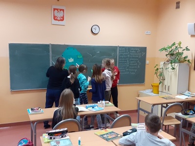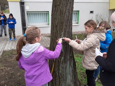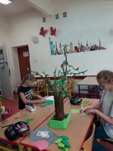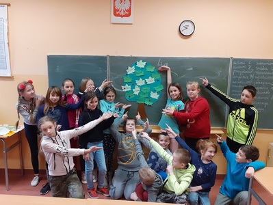 Od listopada 2019 roku realizowaliśmy projekt ekologiczno-czytelniczy "Niebieska wstążka dla drzewa we Wrocławiu". Na wszystkich przedmiotach nauczyciele wplatali drzewną tematykę, a uczniowie mierzyli, liczyli, czytali, szukali, ćwiczyli, budowali, rysowali, podpisywali, pisali haiku i robili mnóstwo rzeczy, aby jak najwięcej dowiedzieć się o drzewach i ich roli w ekosystemie miejskim. Do projektu wybraliśmy dwie rosnące przed szkołą robinie akacjowe, które w wyniku burzliwych negocjacji nazwaliśmy Drobinką i Liściastkiem, rodzeństwem Telinków. Uroczystość ozdobienia drzew niebieską wstążką planowaliśmy na marzec, ale z powodu sytuacji epidemiologicznej w kraju przenieśliśmy ją na czerwiec i przeprowadziliśmy w niezwykle kameralnym gronie według wytycznych sanitarnych. Ale udało się - drzewka mają imiona i ozdobę, a my obejrzeliśmy przepiękny taniec przygotowany przez nasze niezwykle utalentowane tancerki, Amelkę i Julkę.