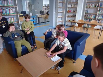 We wtorek 16 maja uczniowie klasy 2b odwiedzili Bibliotekę Pedagogiczną, w której wzięli udział w grze zespołowej "W labiryncie tajemnic biblioteki". Poprzez rozwiązywanie zadań i łamigłówek dzieci poznawały pracę biblioteki i jej pracowników. Miały też wyjątkową okazję poszperać w bibliotecznym magazynie, do którego drzwi chronione są tajnym hasłem, a wstęp mają tylko nieliczni. Wszystkim drużynom udało się zebrać maksimum punktów i zasłużyć na słodką nagrodę i dyplomy od Pań bibliotekarek. KS