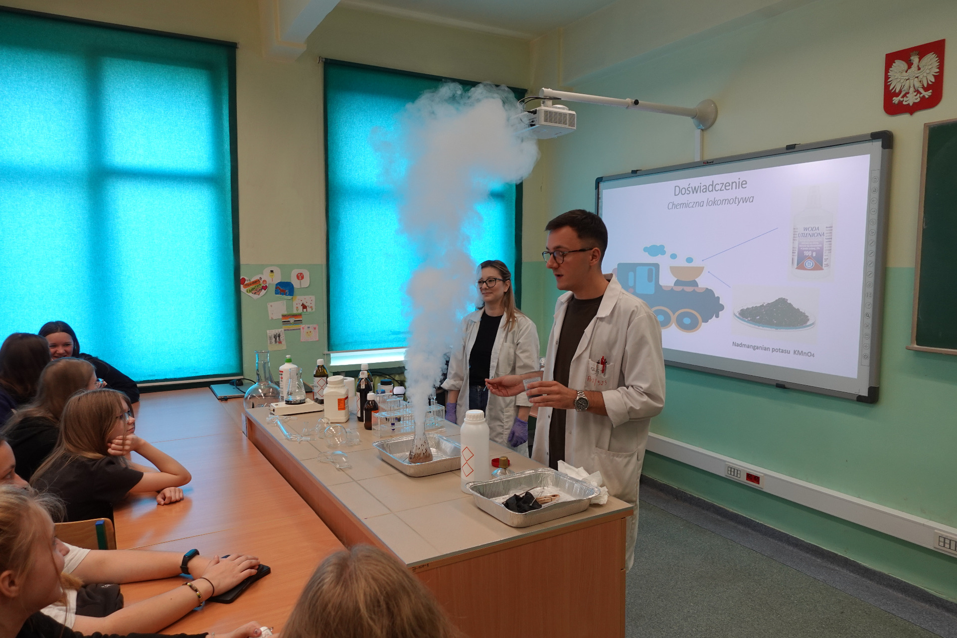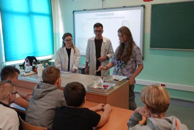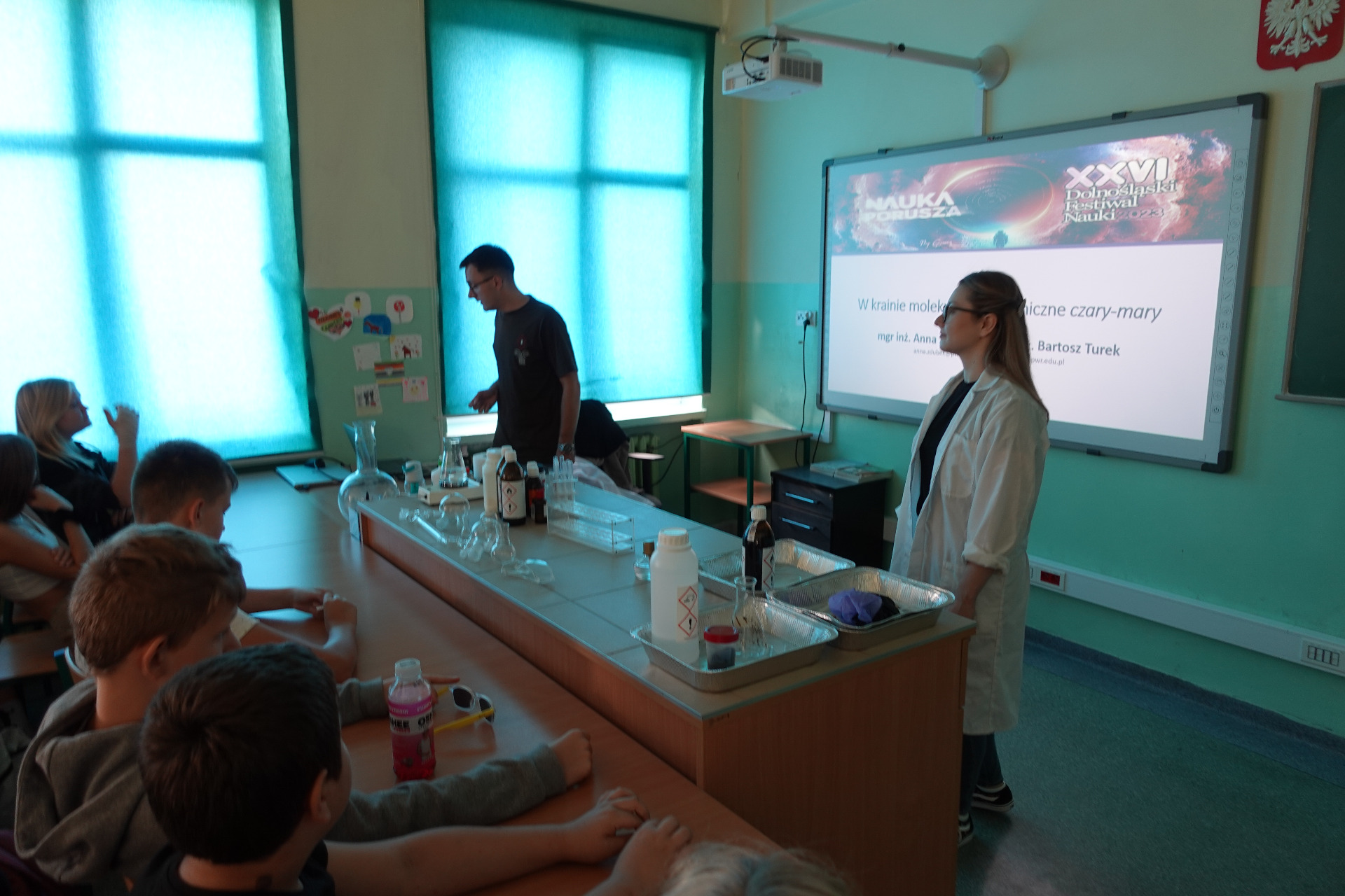 W piątek 15 września odwiedzili nas wybitni wrocławscy naukowcy - prof. dr hab. Joanna Wyka z Wydziału Biotechnologii i Nauk o Żywności Uniwersytetu Przyrodniczego, dr inż. Tomasz Czapka z Wydziału Elektrycznego Politechniki Wrocławskiej oraz doktoranci Wydziału Chemicznego Politechniki Wrocławskiej, mgr Anna Zdubek i mgr Bartosz Turek. W ramach Dolnośląskiego Festiwalu Nauki przeprowadzili interaktywne pokazy dla naszych uczniów dotyczące edukacji konsumenckiej, elektrostatyki i molekuł. Bardzo dziękujemy za fantastyczne spotkania. Młodzież była zachwycona, a zdobyta w czasie pokazów wiedza zostanie z nimi na długo. Zdjęcia: Paweł kl. 8 #laboratoriaprzyszłości #dolnośląskifestiwalnauki