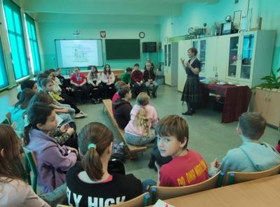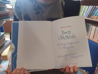 W środę 22 listopada gościliśmy w szkole wyjątkowego gościa - pisarkę, panią Magdalenę Zarębską. Pani Magdalena opowiedziała uczniom o procesie powstawania książki (niektórzy byli naprawdę zaskoczeni, jak wiele osób jest w to zaangażowanych!), o swoich powieściach oraz pasjach. Zdradziła im też wiele ciekawych informacjach o koniach, konikach i kucach. Dzieci były zachwycone spotkaniem i wspominały o nim przez kilka kolejnych dni. Na pamiątkę wizyty pani Magdalena podpisała nam szkolny egzemplarz "Borysa i Zajączków". Spotkanie odbyło się w ramach realizacji Narodowego Programu Rozwoju Czytelnictwa 2.0 #NPRCz2.0