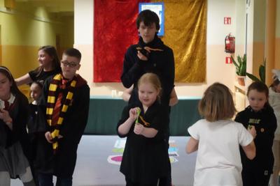 Kolejny raz nasza szkoła stała się filią Hogwartu. W tym roku przyjęci zostali uczniowie, którzy wykazali się sprytem i zaangażowaniem w wyzwanie czytelnicze. Po zachodzie słońca stawili się tłumnie w holu szkoły, po czym przeszli do Wielkiej Sali Hogwartu na ceremonię przydziału. Młodzi adepci pilnie uczyli się zaklęć i warzenia eliksirów, hodowali także smoki i zadbali o ich aktywność fizyczną w trakcie wyścigu. Z wielką przyjemnością wydaliśmy wszystkim uczniom dyplomu ukończenia nauki, a pomagającym nam absolwentom - dyplomy ukończenia praktyk nauczycielskich. Zdjęcia: Rafał A.