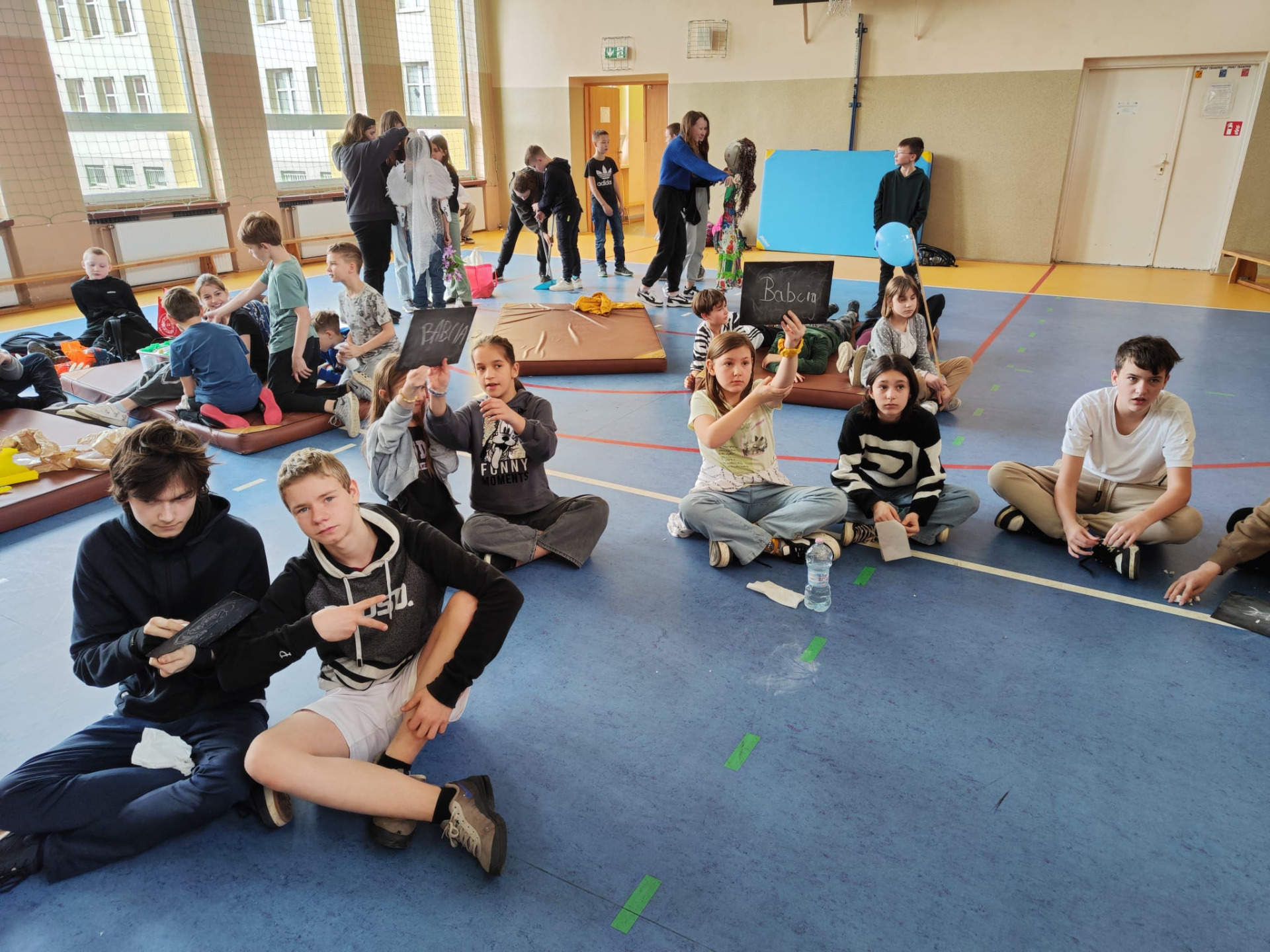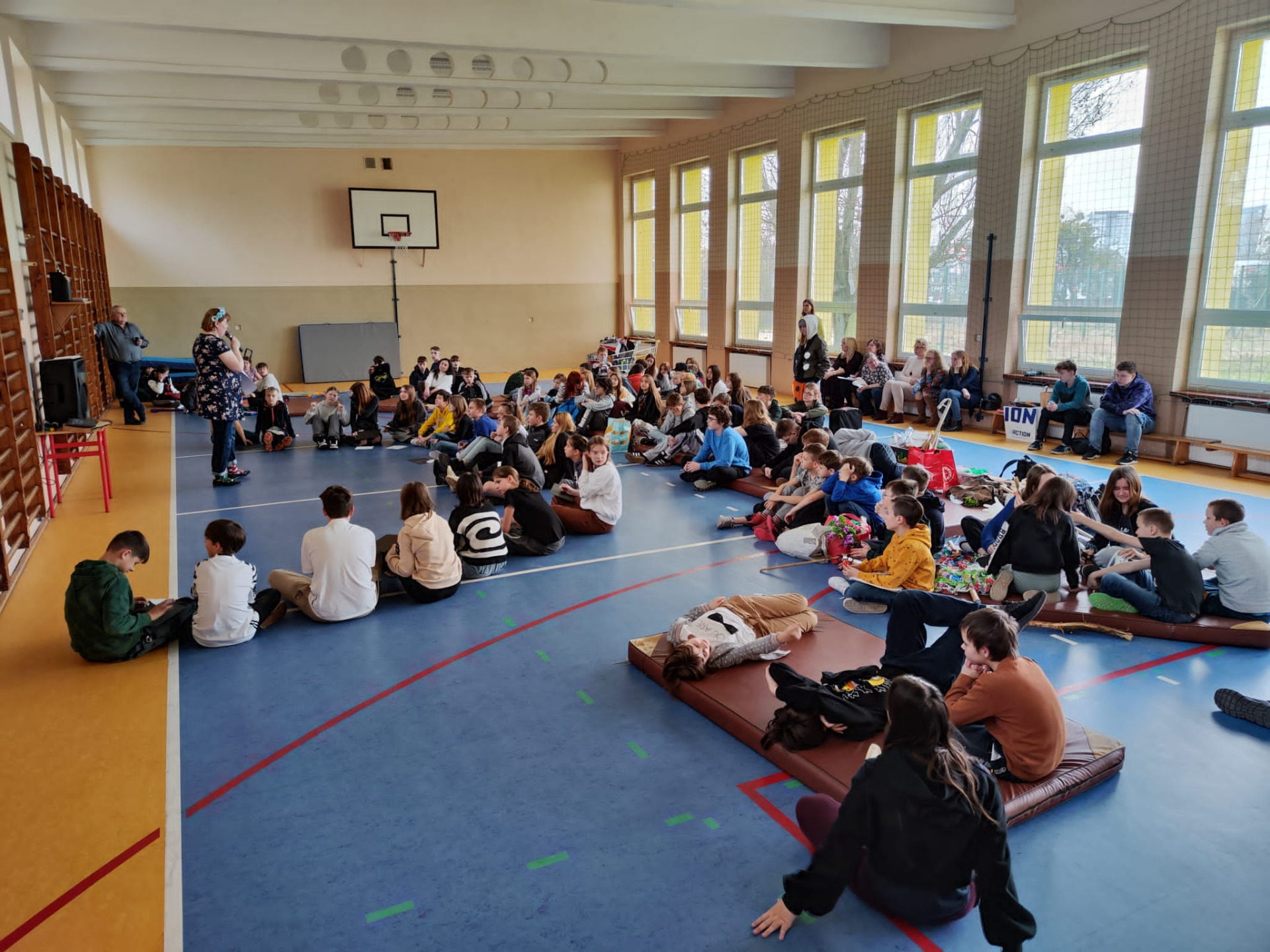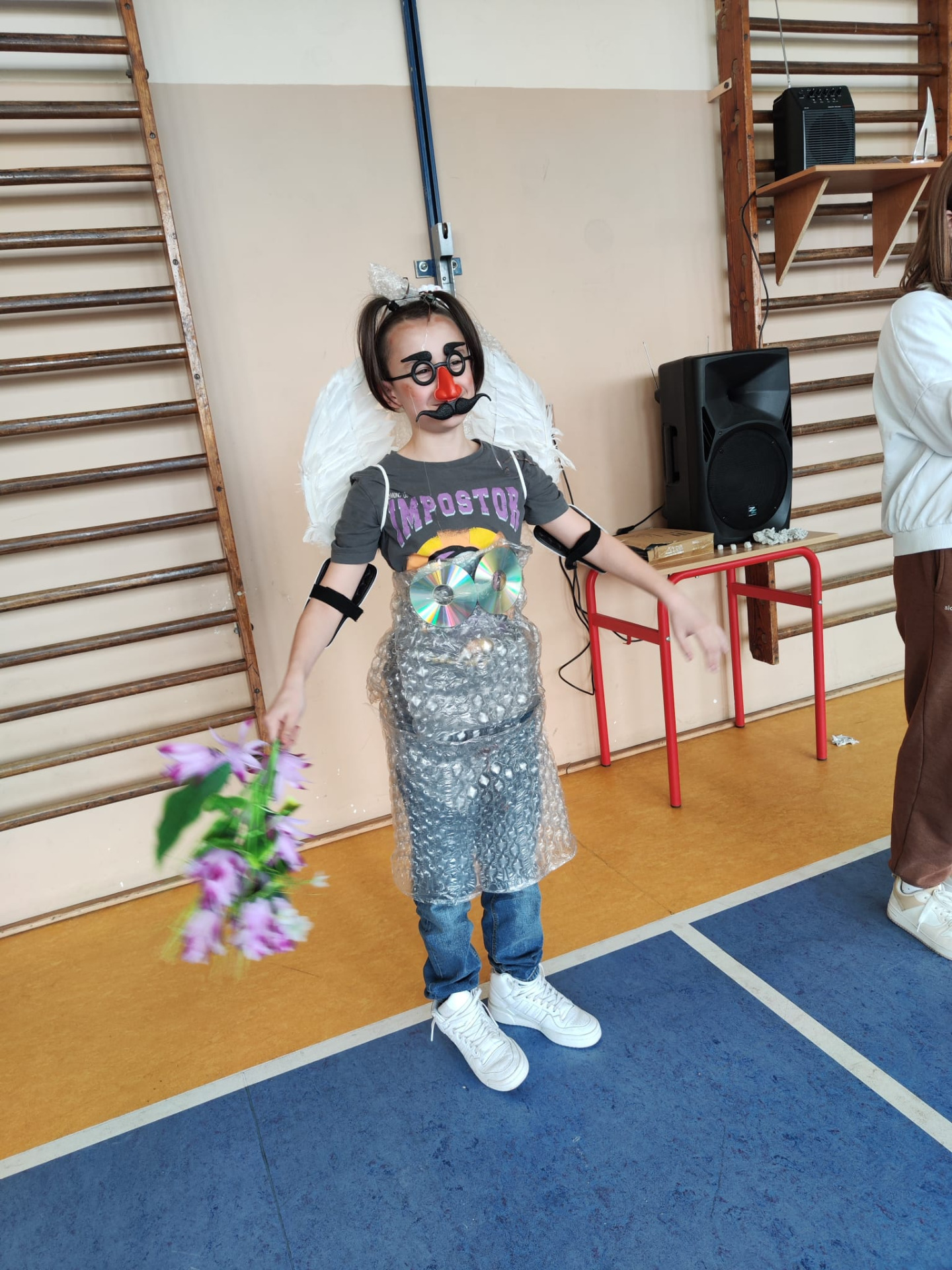 W czwartek 21 marca na wagary poszły u nas plecaki, za to w szkole pojawili się uczniowie z wózkami, siatkami, chlebakami i... mikrofalówką. Był to ważny dzień dla naszej szkolnej społeczności, bo w ten dzień zakończyliśmy coroczną Ligę Teligi. Uczniowie klas 4-8 od września mierzyli się z różnymi zadaniami, zdobywając skrupulatnie punkty. W czasie finału przedstawiciele klas wzięli udział w dwóch niełatwych quizach (o naszej szkole oraz ul. Traugutta i jej patronie), a pozostali tworzyli w tym czasie Marzannę z recyklingu. Na finale pojawiło się też zadanie specjalne, czyli Krystyna Czubówna przedstawia - uczniowie mieli za zadanie w formie filmu przyrodniczego przedstawić urocze epitylice. Po zaciętej walce jury podsumowało wszystkie punkty i z wielką przyjemnością statuetkę Mistrza Ligi Teligi wręczyliśmy klasie 8b. Na zakończenie zabawy pozbyliśmy się zimy, wykonując rzut Marzanną do celu.