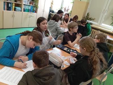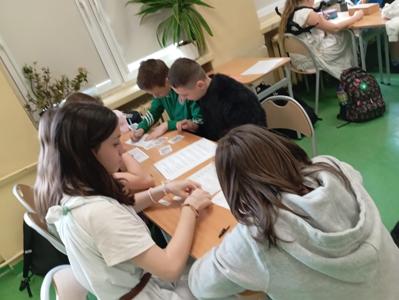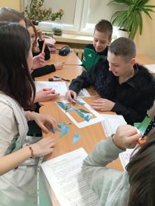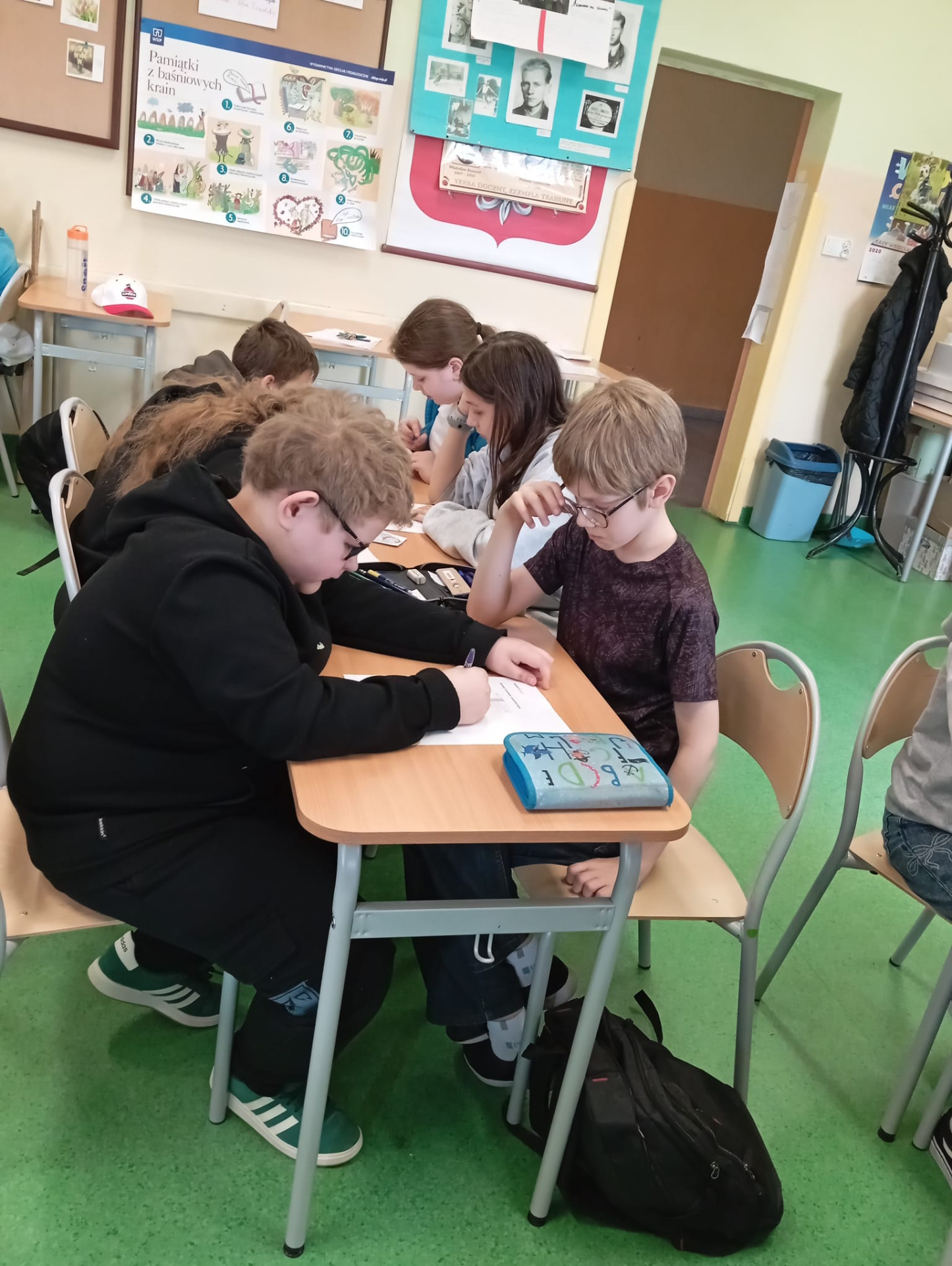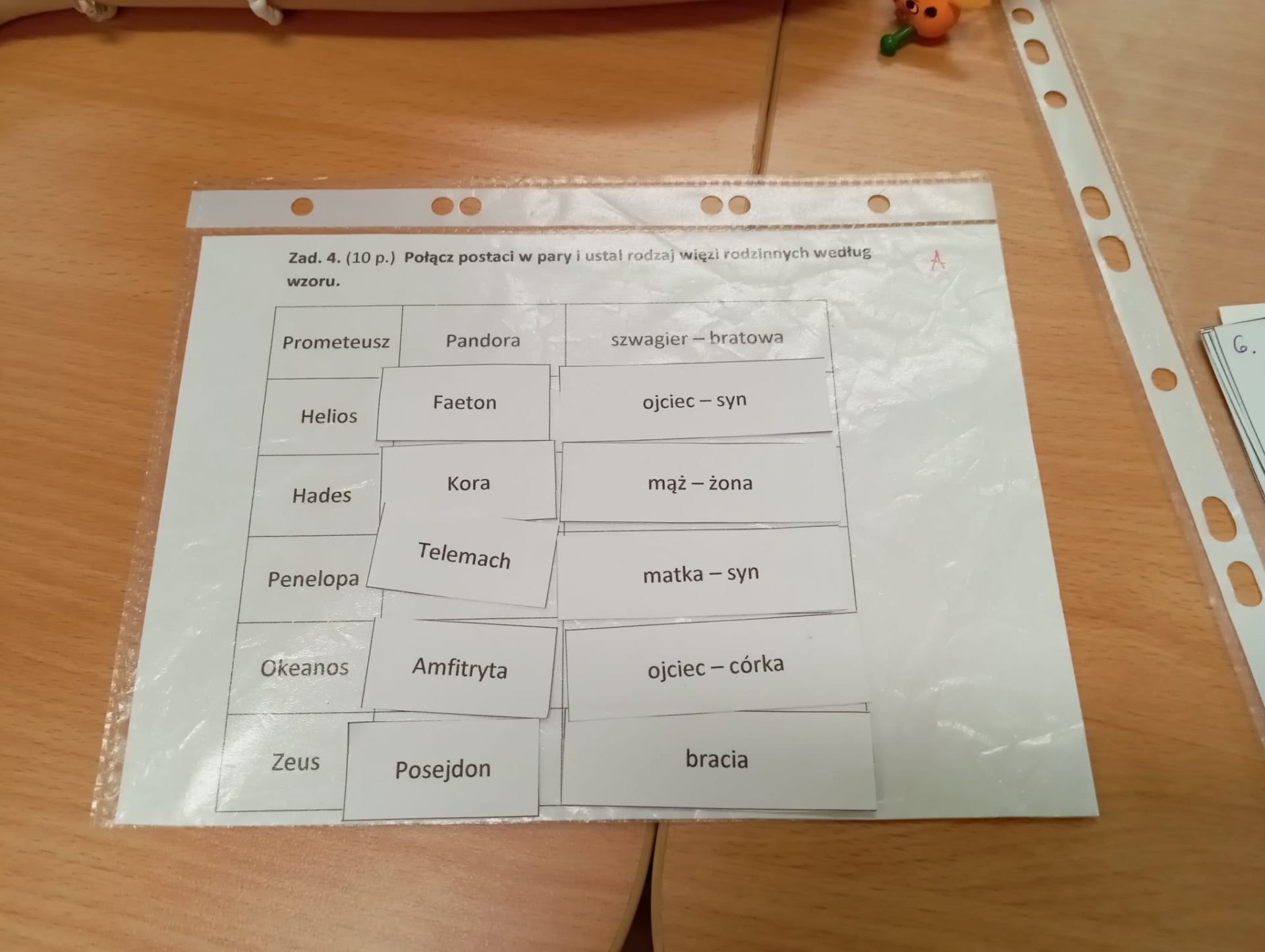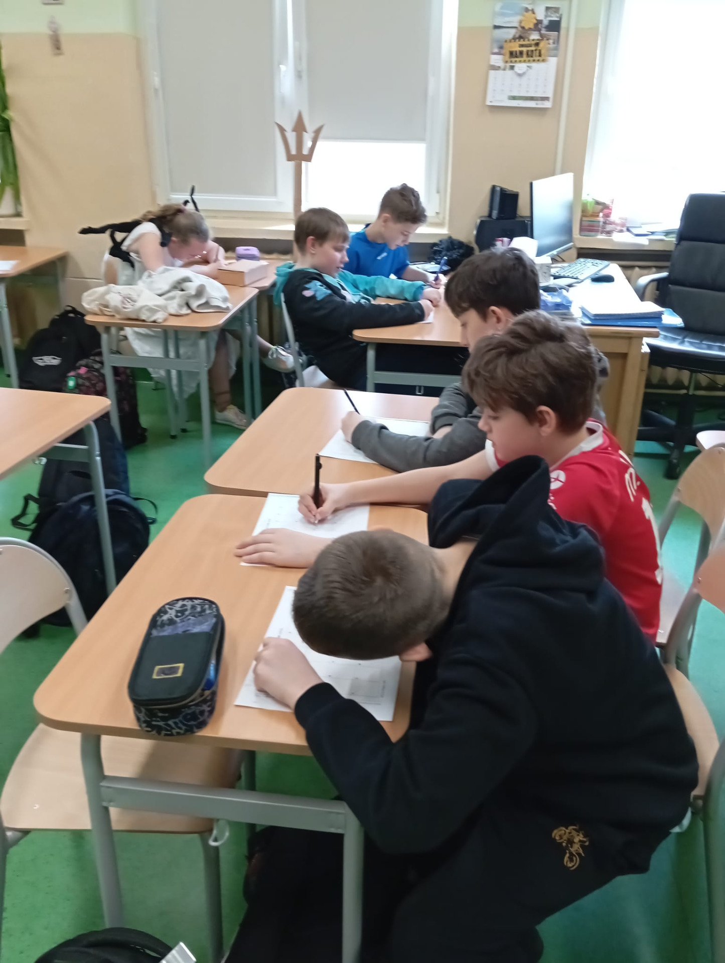 W czwartek 27 marca odbył się Szkolny Konkurs Mitologiczny, w którym wzięli udział uczniowie klas piątych. Uczestnicy przedstawiali postacie mitologiczne, a potem uzupełniali tekst z lukami, wyjaśniali związki frazeologiczne oraz rozpoznawali mity na podstawie cytatów. Nie lada wyzwaniem okazało się ułożenie puzzli z wizerunkiem władcy mórz. Obydwie klasy wykazały się wspaniałą znajomością mitów greckich. Przewagą dwóch punktów zwyciężyła klasa V b.