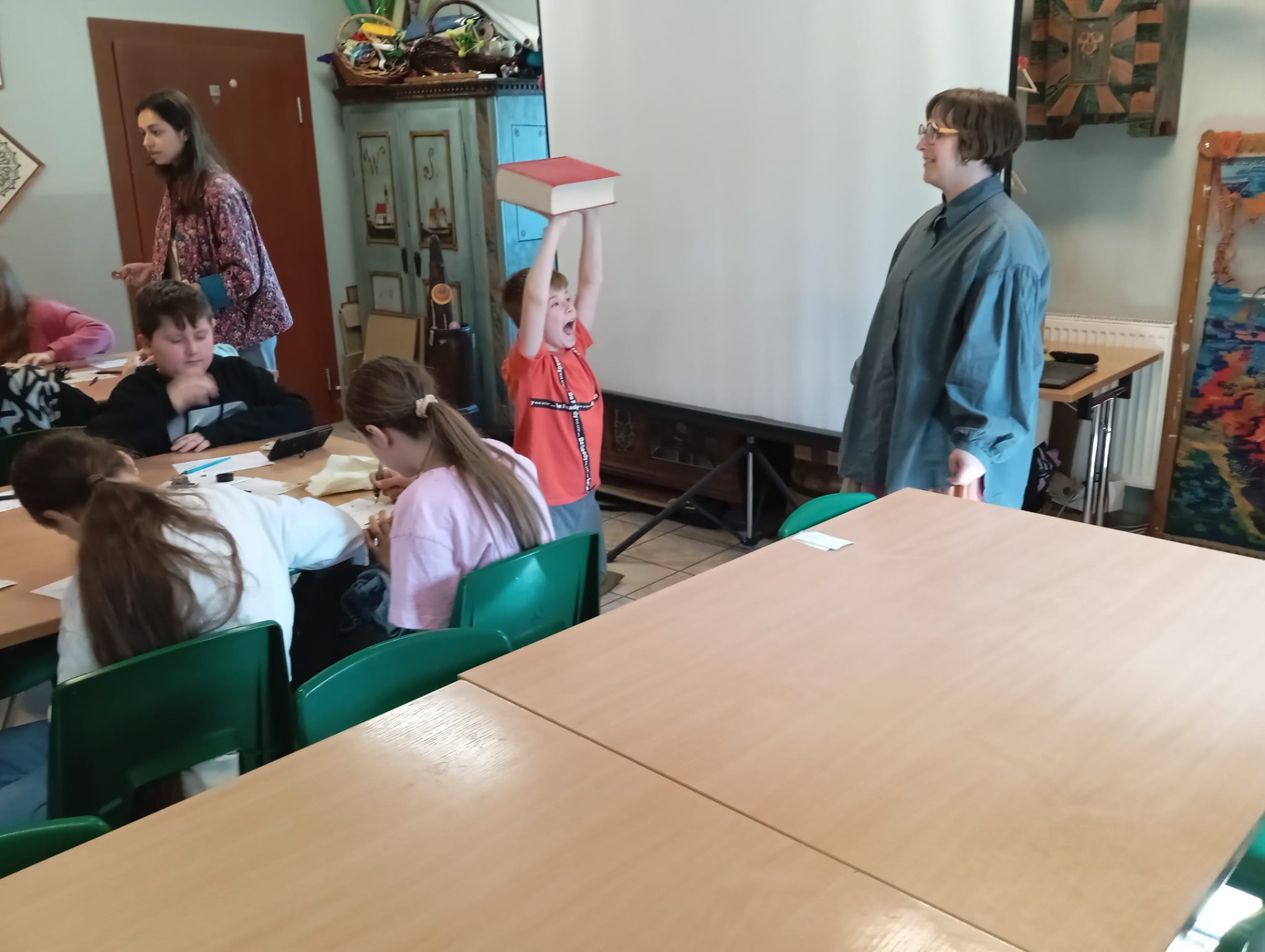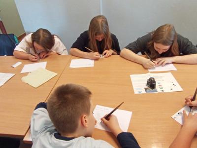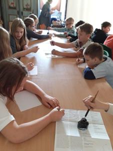 Dnia 29.04.25 r. klasa 4a odwiedziła Muzeum Etnograficzne. Podczas lekcji uczestnicy poznali realia nauczania w dawnej szkole. Niektórzy przekonali się, jak karano niegrzecznych uczniów. Na zakończenie wszyscy próbowali pisać piórem, którego stalówkę trzeba było maczać w atramencie. DGw