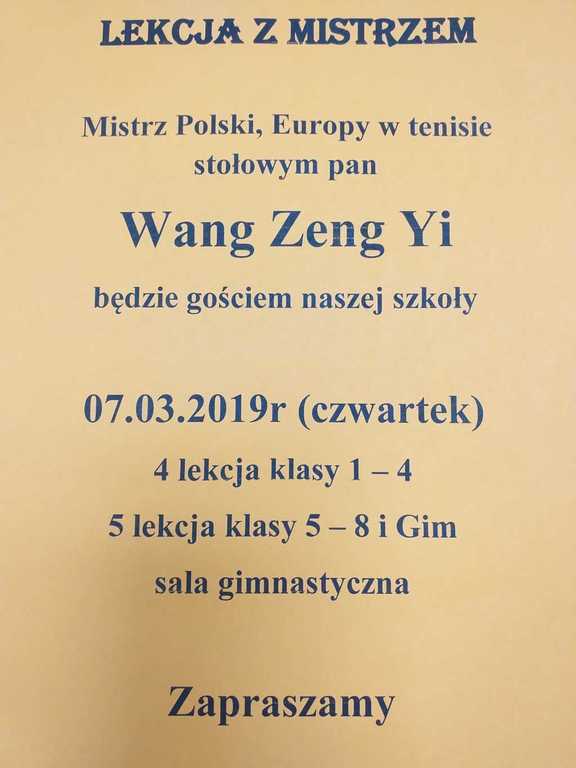 Wang Zeng Yi gościem naszej szkoły Lekcja tenisa stołowego z mistrzem Polski i Europy? Takie rzeczy tylko u nas :) Dziękujemy za wizytę i cenne wskazówki!