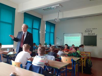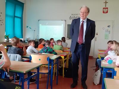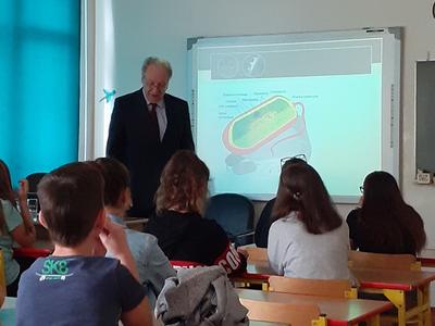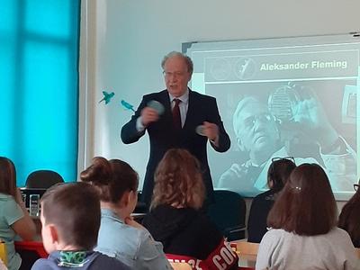 W piątek 27 września uczniowie klas 5 i 7 mieli okazję spotkać się z niezwykłym gościem. Odwiedził nas prof. dr hab. Janusz Boratyński z Instytutu Immunologii i Terapii Doświadczalnej PAN. Pan profesor opowiadał nam, jak nauka zmienia świat - czasem zupełnie przez przypadek. Poznaliśmy historię powstania penicyliny i mikroskopu oraz wagę prac prof. Weigla. Na zakończenie profesor zdradził nam kilka szczegółów ze swoich prac badawczych - mamy nadzieję, że jego odkrycia znacząco wpłyną na rozwój nauk medycznych. Może któryś z naszych uczniów będzie kontynuował jego dzieło? Zdjęcia: E. Hartman