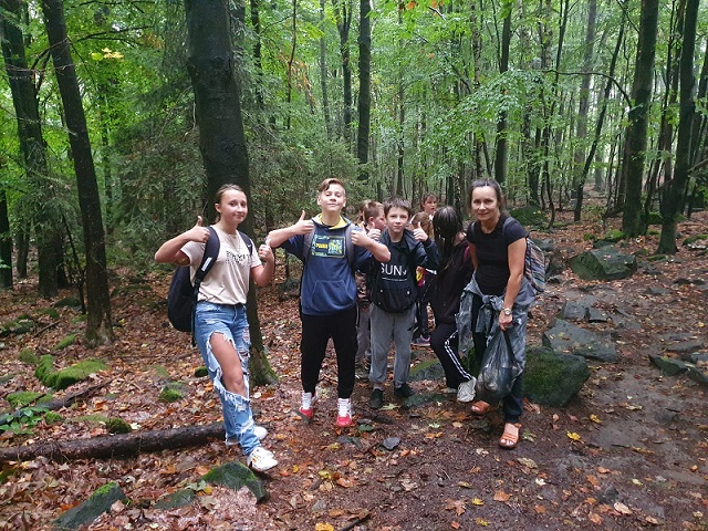 W piątek 17 września klasy 4a, 4b, 7a i 7c udały się na wycieczkę do Sobótki i na Ślężę (718 m n.p.m.). Klasy młodsze wybrały szlak czerwony, natomiast klasy starsze poszły szlakiem żółtym. Szlak czerwony określany jest jako Droga Ślężan, jest to stosunkowo łatwa trasa, która pozwoliła uczniom zobaczyć m.in. źródło św. Jakuba, rzeźby kamienne Postać z Rybą i Niedźwiedzia. Uczniowie klas młodszych przeszli w sumie około 10 km. Szlak żółty jest najpopularniejszym szlakiem wiodącym na szczyt Ślęży przez przełęcz Pod Wieżycą i szczyt Wieżycy, gdzie zrobiliśmy pamiątkowe zdjęcie. W dalszej części trasy oba szlaki połączyły się i razem z uczniami klas czwartych zmierzaliśmy na szczyt.