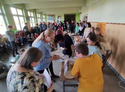 Przez kilka listopadowych dni szkolne korytarze zapełniały się hasłami reklamującymi jedzenie warzyw i owoców. W poniedziałek 27 listopada odbyło się uroczyste zakończenie listopadowego zadania "Szkolny Robert Makłowicz", podczas którego uczniowie klas 4-8 prezentowali swoje talenty kulinarne i wiedzę o diecie bogatej w warzywa i owoce. Gratulujemy wszystkim wspaniałego przygotowania i dziękujemy za przyniesione pyszności!