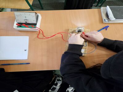 Z prądem za pan brat Uczniowie klas siódmych i ósmych pod czujnym okiem uczącej fizyki pani Joanny opracowali własne obwody elektryczne. Niektórzy planują dalszą naukę na kierunkach technicznych, więc treningu nigdy dość :) Zdjęcia Zobacz również Świąteczne kartki z Berlina Warsztaty ekologiczne Sukces w XIII Wrocławskim Miedzyszkolnym Konkursie... Z prądem za pan brat Wieczór z Harrym Potterem Let me out - szóstoklasiści w escape roomie 20 lutego 2024 Aktualności Wydrukuj Udostępnij Wyświetlono: 88