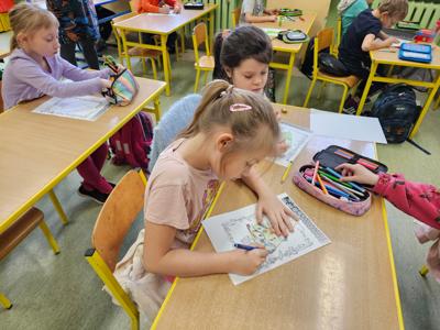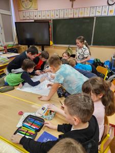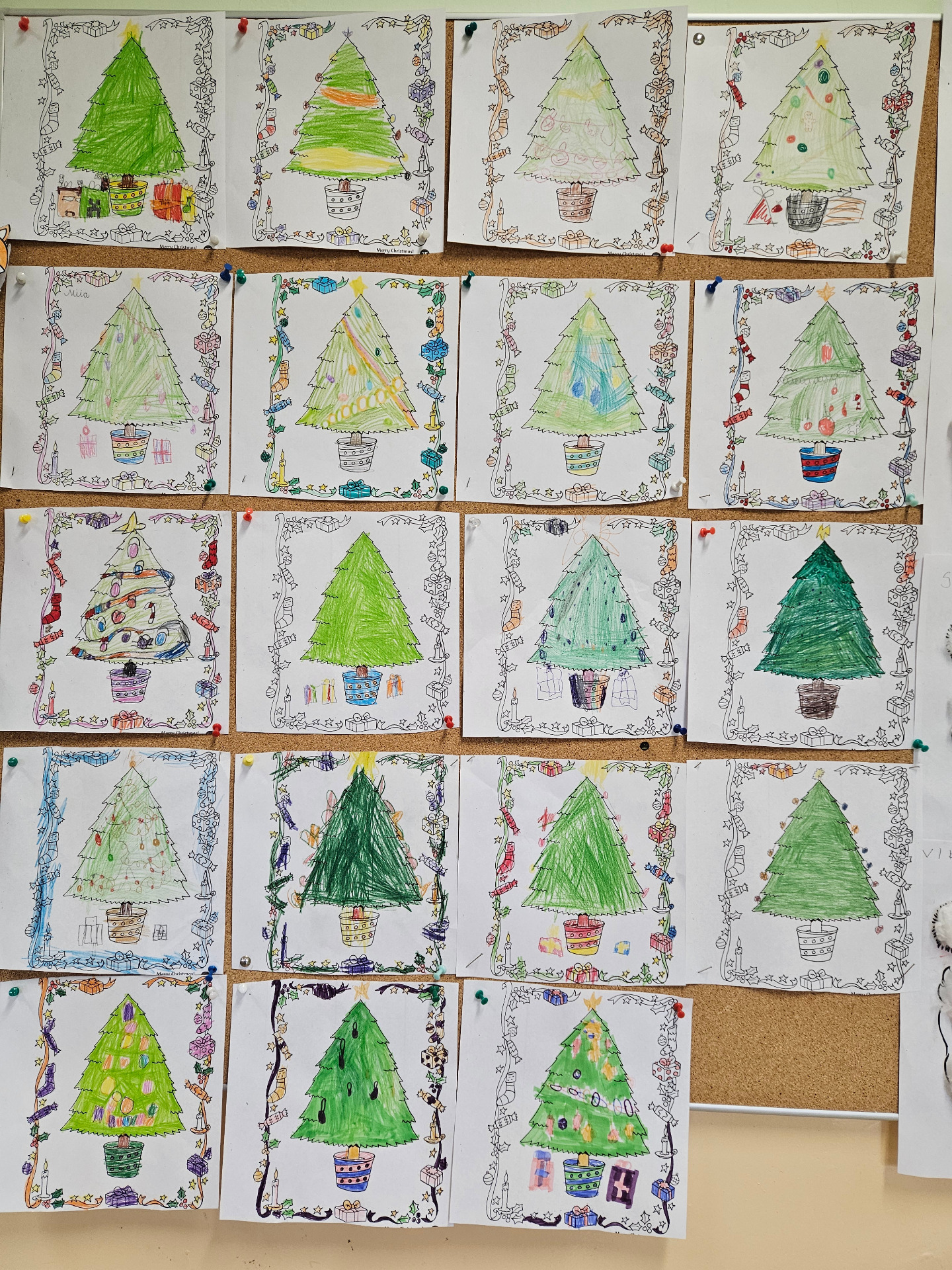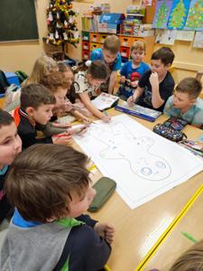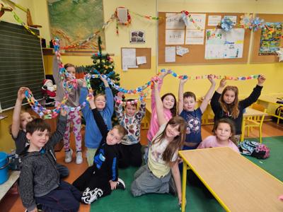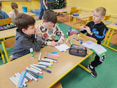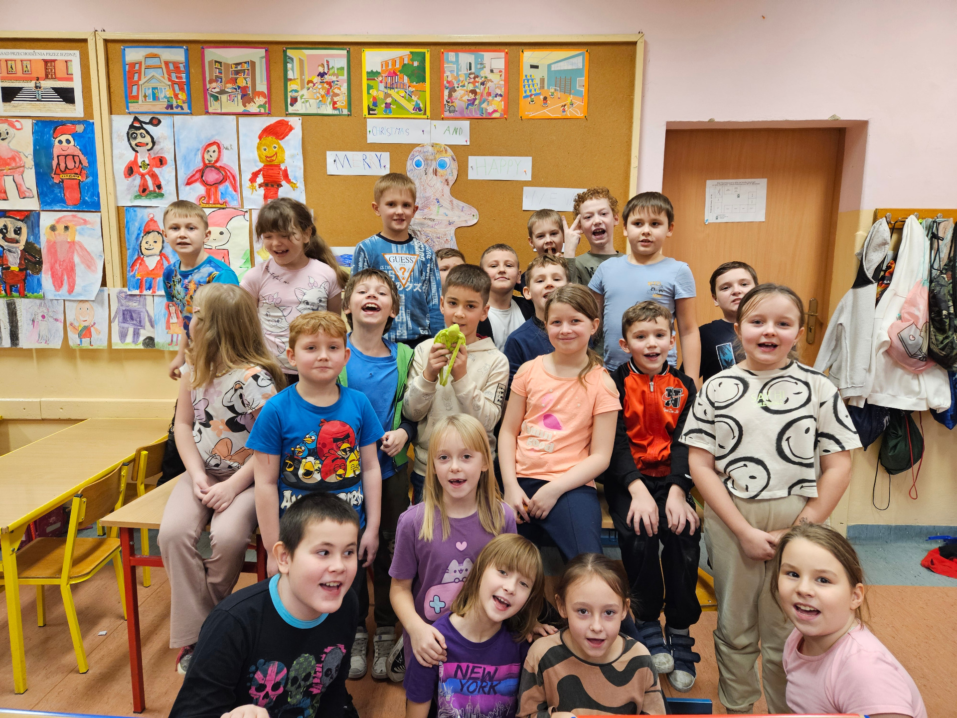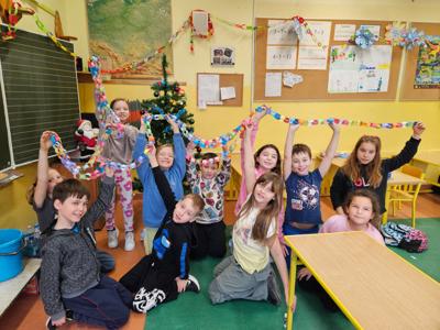 W przedświątecznym tygodniu klasy 1a, 2a i 3a wykonywały różne zadania świąteczne w ramach "Christmas Challange" - klasa 1a uczyła się interaktywnej piosenki świątecznej S-A-N-T-A, doskonaląc znajomość alfabetu oraz poznawała tajniki Świąt Bożego Narodzenia w Wielkiej Brytanii. Klasa 2a powtarzała słownictwo z wielkim Gingerbreadmanem, natomiast klasa 3a wykonała dłuuuugi łańcuch świąteczny wypełniony słówkami angielskimi.