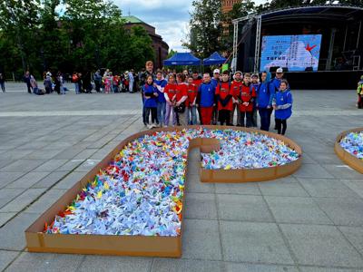 W 80 rocznicę zakończenia II wojny światowej na pl. Wolności odbyło się niezwykłe wydarzenie. Uczniowie wrocławskich szkół i dzieci z wrocławskich przedszkoli przez wiele dni składali żurawie origami, aby 8 maja wspólnie ułożyć napis POKÓJ. Wydarzenie "80 000 żurawi dla Pokoju" nawiązuje do historii Sadako Sasaki z Japonii, która jako dwuletnie dziecko przeżyła wybuch bomby atomowej w Hiroszimie w 1945 roku. Mając 12 lat, zachorowała na białaczkę popromienną. Zgodnie z japońską tradycją wierzyła, że złożenie tysiąca żurawi może przynieść jej zdrowie i pokój na świecie. Niestety nie zdążyła złożyć ich aż tylu - jej historia zainspirowała ludzi na całym świecie, a żuraw origami stał się międzynarodowym symbolem dążenia do pokoju i globalnej współpracy. Naszą szkołę reprezentowała klasa 4b.