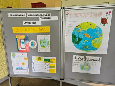 · plakaty prezentujące ziemię, jaką chcielibyśmy mieć (wystawa oraz platforma Twinspace, a także prezentacja na Mosaically.com);