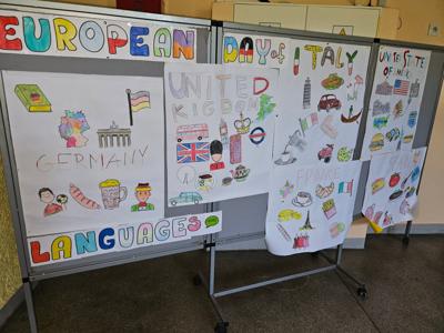 W czwartek 2 października 2025 w ramach obchodów Europejskiego Dnia Języków Obcych gościły u nas dzieci z klasy 2b ze Szkoły Podstawowej nr 80. Razem z klasą 3a poznawały kraje Europy (i nie tylko!), przygotowując wspólnie plakaty, które je prezentowały.