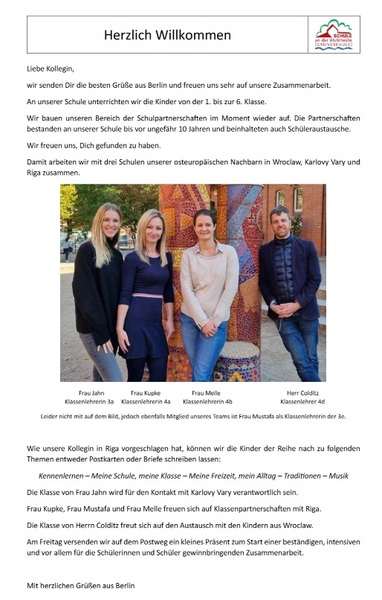23 października 2023 Aktualności Współpraca z Schule an der Wuhlheide z Berlina Dzięki nauczycielce języka niemieckiego, pani Oli, nasza szkoła nawiązała za pośrednictwem portalu Partnerschulnetz współpracę z Schule an der Wuhlheide z Berlina. Dzięki tej współpracy... Czytaj więcej